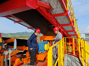 為保障碼頭土建順利進行,華新團隊要在大風、暴雨等惡劣天氣來臨前完成設備調試并實現轉移,為碼頭廊道澆筑留出時間和空間。項目經理周逸、電氣工程師趙洋帶領華新團隊克服場地受限、設備調試時間緊、工程車調度時間久等困難,加班加點堅守項目一線,第一時間解決設備調試過程中產生的問題,最終保障項目如期完成進度,為碼頭順利完工打下了基礎。