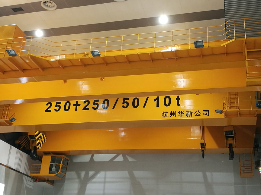 公司設(shè)計制造的所有橋機及門機的起升小車系消化吸收國外先進技術(shù),結(jié)合我國當時的配套水平,綜合研究院多年的技術(shù)研制經(jīng)驗,遵照GB/T3811-2008《起重機設(shè)計規(guī)范》、GB/T14405-2011《通用橋式起重機》等標準,同時參照國外有關(guān)起重機標準及歐洲搬運協(xié)會主流橋式起重機機型研制而成,節(jié)能減排,經(jīng)濟環(huán)保,特別適合地下廠房、新型工廠及大噸位貴重物件的吊裝、搬運就位工作。公司首臺臺橋機為1990年研發(fā)、1992年投入生產(chǎn)的寧波北侖電廠80/20t橋式起重機,公司首臺臺門機為1994年向富春江發(fā)電廠提供的2×20t尾水門機。近三十年的發(fā)展,已向國內(nèi)外眾多優(yōu)質(zhì)客戶提供千余臺橋機和門機設(shè)備,是目前業(yè)內(nèi)最先進、最成熟的低凈空小車結(jié)構(gòu)。目前制造過的單小車橋機最大額定起重量為800t,雙小車橋機最大額定起重量為500t+500t,具備1500噸橋機的設(shè)計制造能力;制造過的門式起重機最大額定起重量為900t的造船龍門吊。